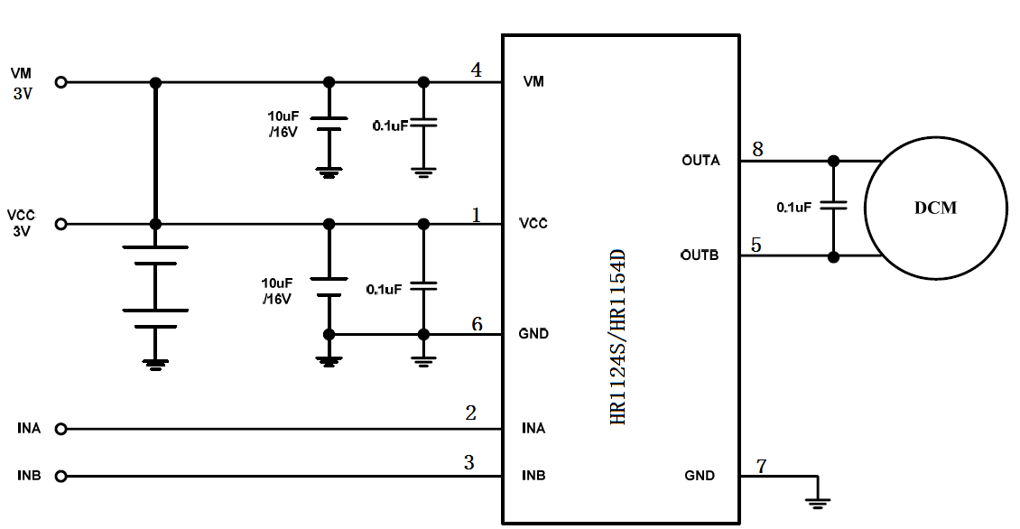The HR1124S、HR1154D is a 1-channel H-bridge driver IC for DC motor application. It has the features of low stand-by current, low operating current, large current output and low RDSON. Those features make it suitable for toy.