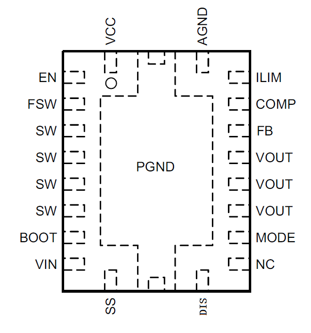19 | ILIM | I | Adjustable switch peak current limit. An external resister should be connected between this pin and the AGND pin. |