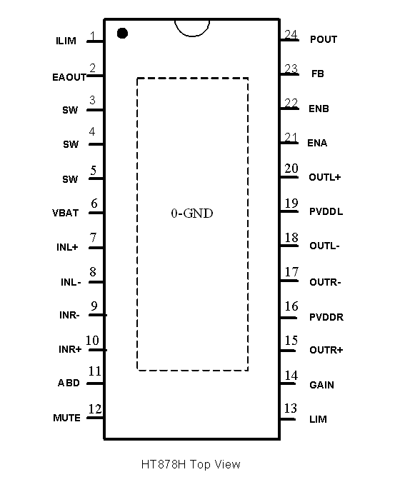 21 | ENA | I | Audio amplifier enabling terminal. Audio amplifier is enabled when it is pulled high. 功放使能端,接高时功放开启。 |